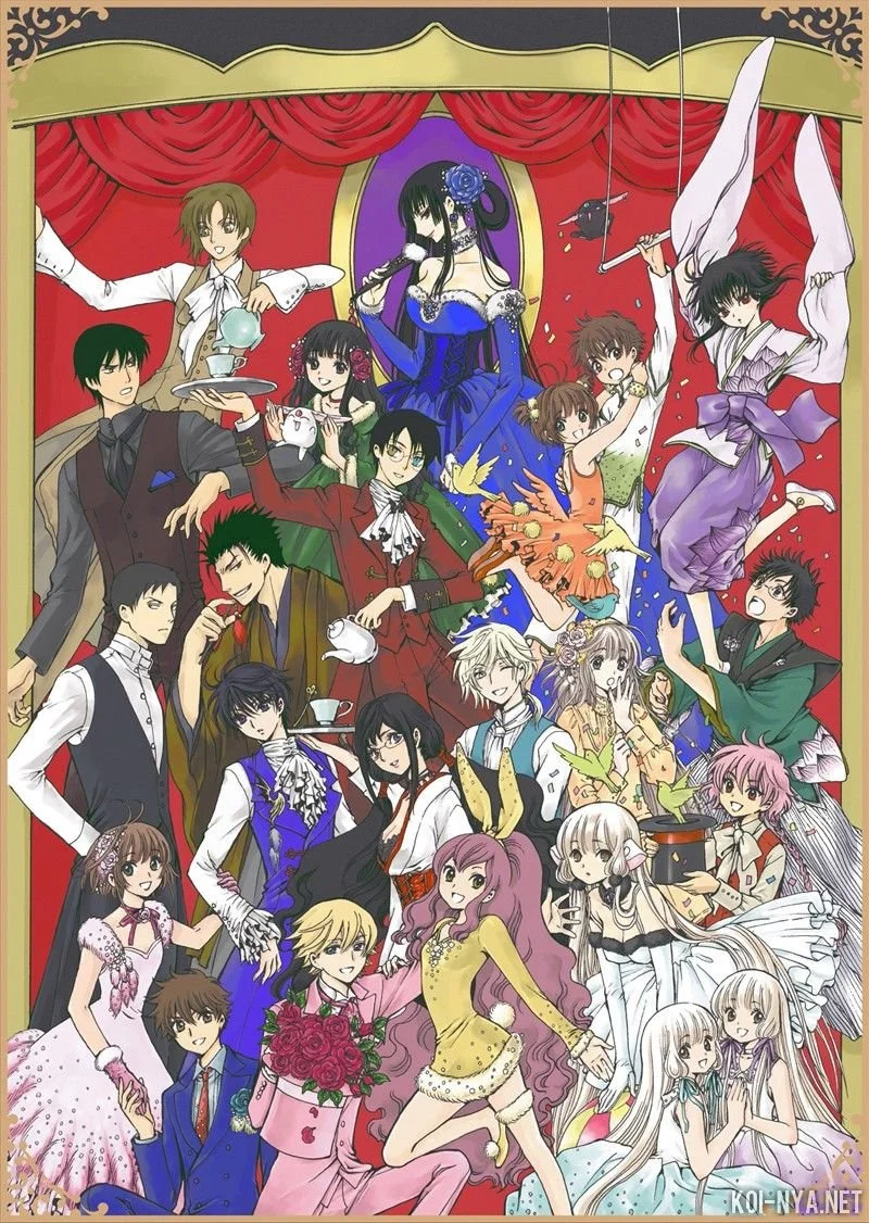CLAMP 最令人著迷的,想必是她們精心構築的 「CLAMP 宇宙」。她們的作品並非獨立存在,而是共享著同一個多元世界觀。角色在不同作品中穿梭、客串,背負的命運彼此交織。《庫洛魔法使》中溫柔的小櫻和小狼,在《TSUBASA翼》(2003)中卻成為了次元旅行者,為了找回記憶而奮鬥;《XXXHOLiC》(2003)中經營神秘商店的侑子小姐,其存在其實與《TSUBASA翼》的旅程息息相關,可以將兩者視作不可分割的姊妹作。而更早的《聖傳》(1989)、《東京巴比倫》等作品中的元素、主題及角色,亦在後期作品裡以不同形式再現。這樣的敘事策略在當年可說是極為前衛,不僅加深了忠粉們的探索樂趣,更創造出一種獨特的宏大史詩感。